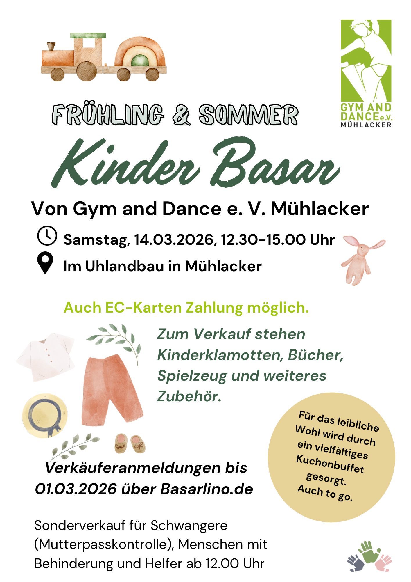 Auch dieses Frühjahr bieten wir am 14.03.2026 wieder unseren beliebten Kinderbasar im Uhlandbau an.